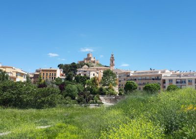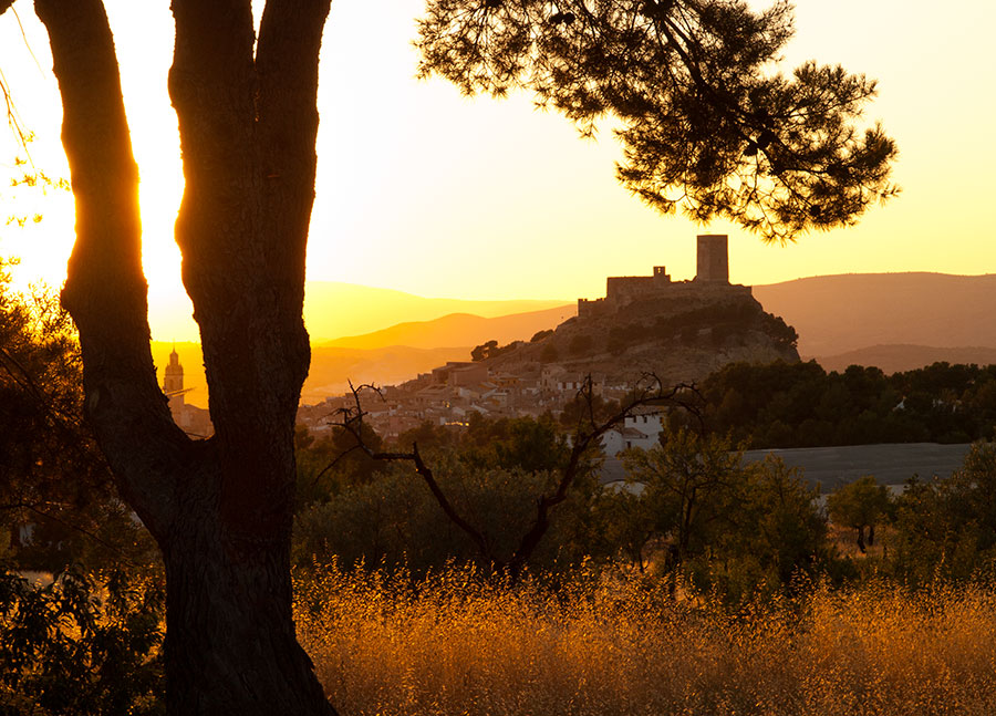 Más allá del casco antiguo, se extienden vastos campos de olivos y almendros, con las majestuosas montañas como telón de fondo. Este entorno natural no solo embellece el paisaje, sino que también protege y envuelve al pueblo, creando un ambiente sereno y acogedor. Por la noche, la iluminación del castillo y del pueblo resalta su silueta, ofreciendo una vista espectacular que no te puedes perder.